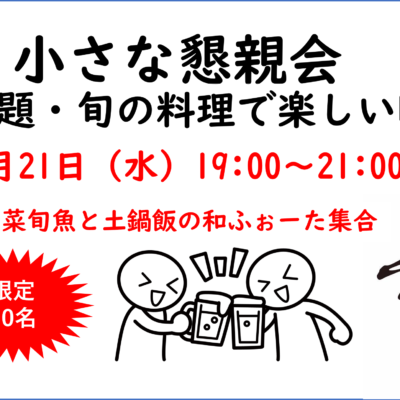 **締切以降のキャンセルは、会場費・料理の手配の関係上キャンセル料(参加費)を徴収させて頂きますのでご了承をお願いします。